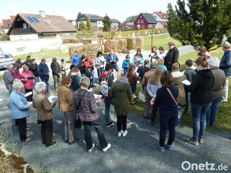 Am fünften Fastensonntag zogen die Gläubigen gemeinsam los. Die Misereor-Fastenaktion hatte für den diesjährigen Familienkreuzweg El Salvador in den Mittelpunkt gestellt. So erfuhr die Gruppe bei ihrer Wanderung über Pfarrheim, Ölberg an der Pfarrkirche, Stadtbrunnen, Friedhofseingang, Friedhofskreuz und Aussegnungshalle mehr über Ungerechtigkeit, Alltagsprobleme, Hilfsbereitschaft, Mitgefühl, Trauer und Hoffnung in diesem Land Mittelamerikas – Situationen, die auch ihnen jederzeit im Alltag begegnen können.