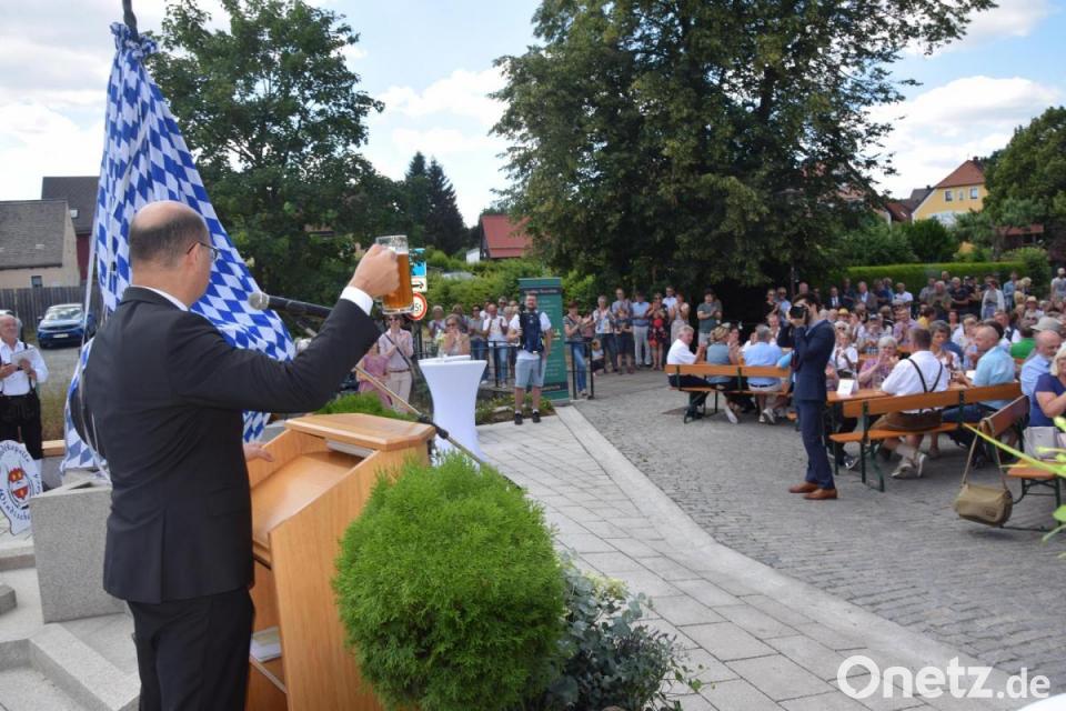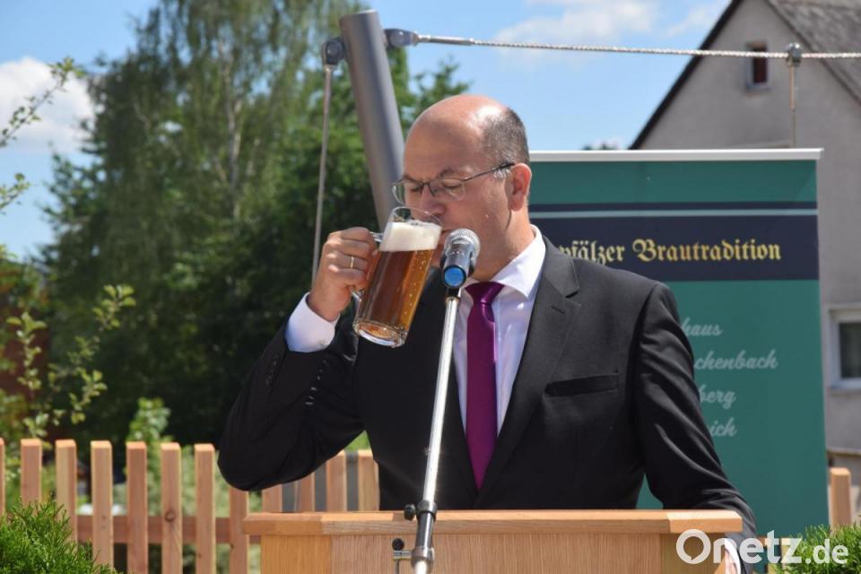 Mit einem Zoigl in der Hand und einem "Prost" zu den 150 Besuchern begann Füracker seine Festansprache. Eine Hommage an die Region, durch deren Adern Zoigl fließe. Zwei wichtige Veranstaltungen gebe es an diesem Wochenende in Bayern. In Elmau der G7-Gipfel und in Windischeschenbach die Zoigldenkmaleinweihung, so der Minister. Er habe sich für die friedlichere Veranstaltung entschieden. Der Politiker aus Neumarkt zeigte sich zudem in die Zoiglgeheimnisse eingeweiht, die zum neuen Selbstbewusstsein der Region beitragen. Es gehe nicht um die Steine, die hier auf dem Platz verbaut sind, sondern um die Botschaft, die sie nach außen senden. Diese sagt, dass Zoigl ein flüssiges Kulturerbe ist.