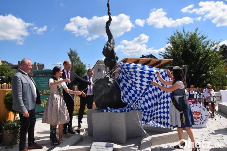 Es war ein bedeutender Tag für die Stadt Windischeschenbach. Der am alten Kommunbrauhaus in der Braugasse neu gestaltete Platz mit dem Zoigldenkmal wird offiziell eingeweiht. Groß war die Menge an Ehrengästen, aber auch Windischeschenbachern, die mit ihrem Besuch auch ihre Verbundenheit zur Jahrhunderte alten Brautradition dokumentieren.
