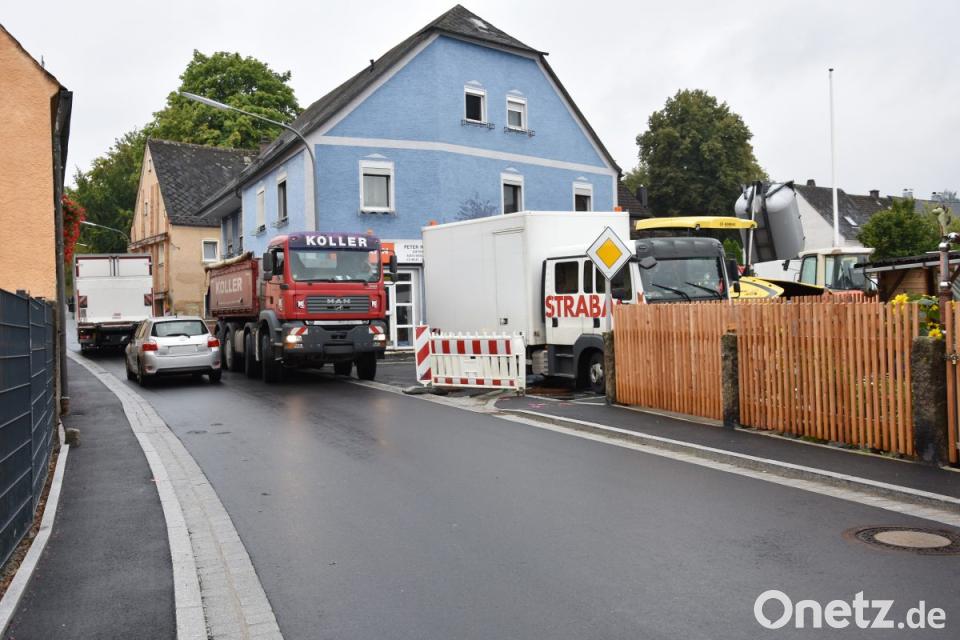 Im Schloßhof kroch am Montag die Asphaltmaschine als erstes hinab. Derweil war ein Arbeiter mit einer Fräsmaschine damit beschäftigt, den Belag an einem Teil des Gehwegs südlich der Stadlmanngasse und Kerschensteinerstraße in der Neustädter Straße zu entfernen. Gegen Mittag dampfte der frische Asphalt nahezu im gesamten Schlosshof. Für die Bauarbeiter war in der engen Gasse Millimeterarbeit angesagt. Besonders für die Fahrer, die ihre Lastzüge, rückwärts an die Asphaltmaschine heranbugsierten, war Finger- und Fußspitzengefühl gefragt. In der Neustädter Straße kam es bis dahin nur zu kurzen Behinderungen. Das änderte sich, als der alte Straßenbelag an der Einmündung der Bürgermeister-Gierisch-Straße abgehobelt wurde. Noch bis Mittwoch soll die Vollsperrung der Neustädter Straße nach Auskunft der Stadt an dieser Stelle andauern. Die Umleitung für den Schwerlastverkehr ist über Gleisenthal, Püllersreuth ausgeschildert.