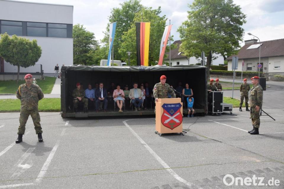 Batteriechef Major Johannes Müller nutzte seine Ansprach auch dazu, den zivilen Gästen die Funktion des Batteriefeldwebels zu erklären. Er wirkt maßgeblich bei der Ausbildung der Unteroffiziere mit und ist zentraler Ansprechpartner für alle Soldaten der Einheit. So kommt ihm eine Schlüsselfunktion für die Gestaltung der militärischen Gemeinschaft zu. Als äußeres Zeichen trägt er die gelbe Schulterschnur und ist somit als „Mutter der Batterie, wie der Spieß umgangssprachlich genannt wird, nach außen erkennbar. Die zukünftige Verwendung wird im Bereich des Kasernenkommandanten am Standort Weiden sein.
