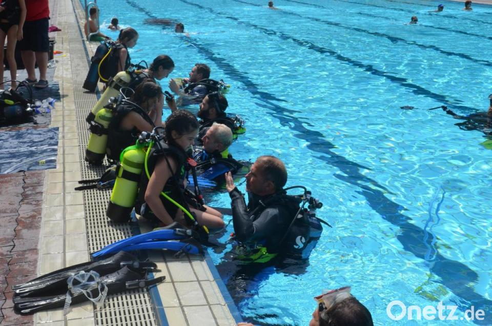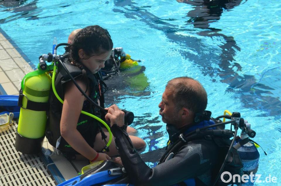 Der Tauch-Service Ullmann aus Windischeschenbach hatte im Ferienprogramm zum Schnuppertauchen eingeladen. Am Anfang standen alle etwas ungläubig vor den großen Pressluftflaschen und Schwimmflossen. "Es ist eine kindgerechte Tauchausrüstung", nahm Harald Ullman den Neulingen die Angst.