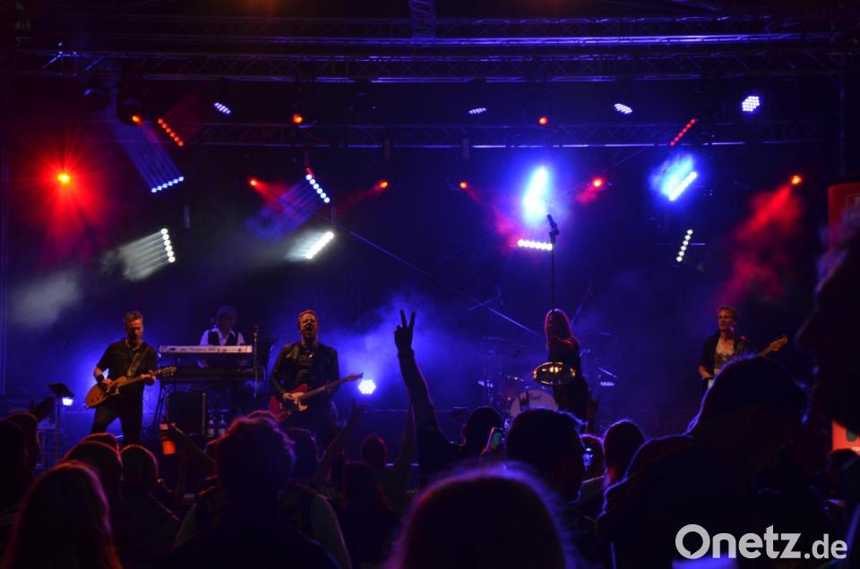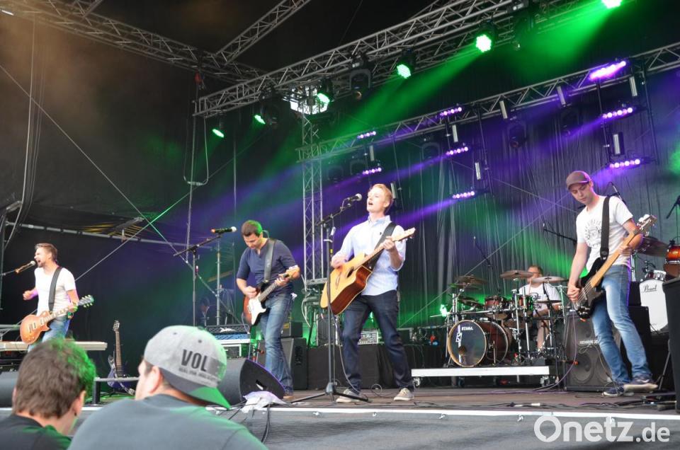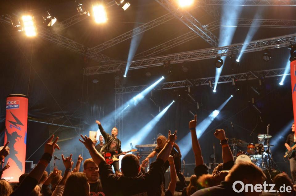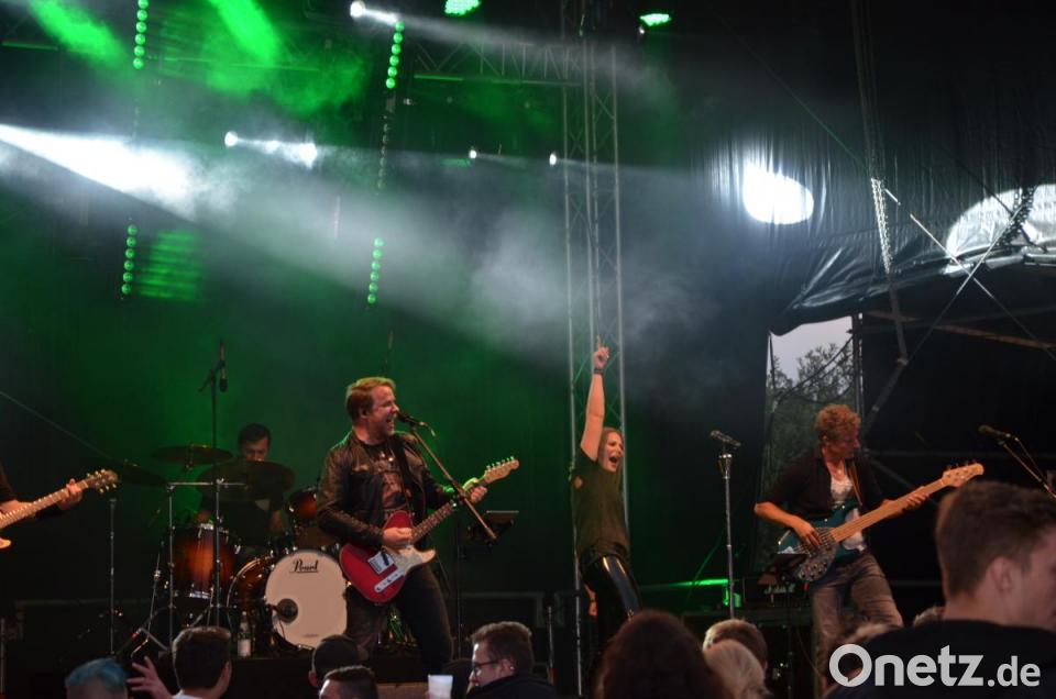Er sollte nicht enttäuscht werden. Zu Beginn herrschte eher noch gemütliche Stimmung auf dem Platz. Die Fläche vor der Bühne war zwar noch relativ leer, dafür waren alle Biergarnituren im hinteren Bereich besetzt. Nach und nach kehrte sich das allerdings um. Vor der Bühne wurde es immer voller. "Ich kann euch jetzt zwar sehen, aber kann man euch auch mal hören?", fragte die "Rock Antenne Band", die als nächstes auf die Bühne schritt. Die Antwort vom Publikum war eindeutig. Die Musiker nahmen die Besucher nun mit auf eine Reise durch die Rockgeschichte. Zwischen "Bon Jovi", "AC/DC" und Co. richteten sich die Blicke aber immer wieder besorgt nach oben. Ab und zu regnete es einzelne Tropfen.