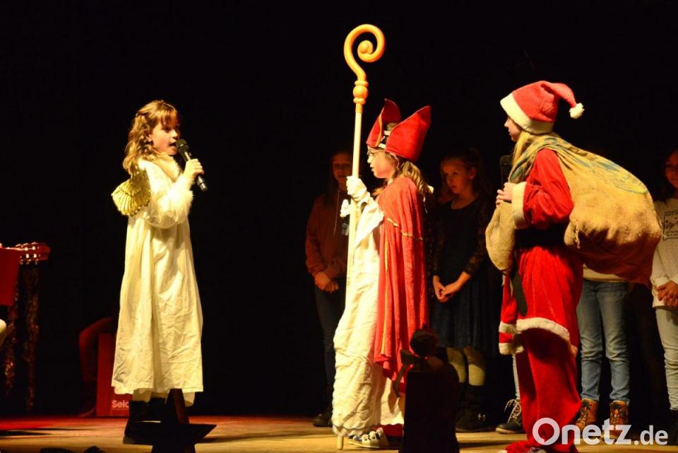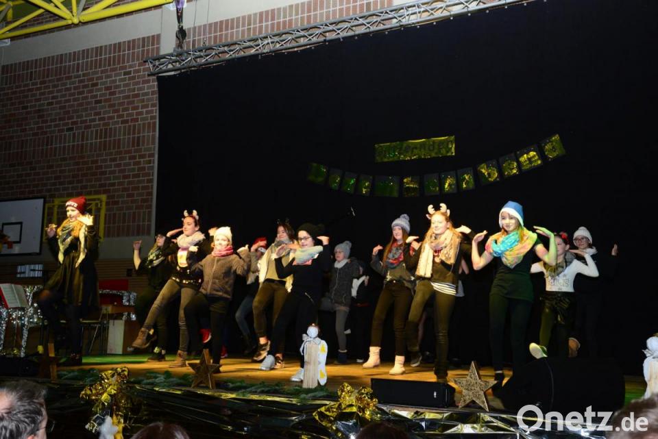 Die Arbeitsgemeinschaften Orff und Gitarre spielten „Morgen kommt der Weihnachtsmann“. Lustig das Gedicht der Klasse 2 von den Bratäpfeln, die anschließend im Publikum verteilt wurden. Die Klasse 3/4 sang „Nikolaus und der Weihnachtsmann“. Dabei wurde klar, dass beide Boten in ihren roten Mänteln, auch wenn sie unterschiedlichen Ursprungs sind, allen Menschen nur das Gute bringen wollen. Einen im Programm als „ganz besonderen Weihnachtstanz“ beschrieben hatte die 3. Klasse eingeübt.