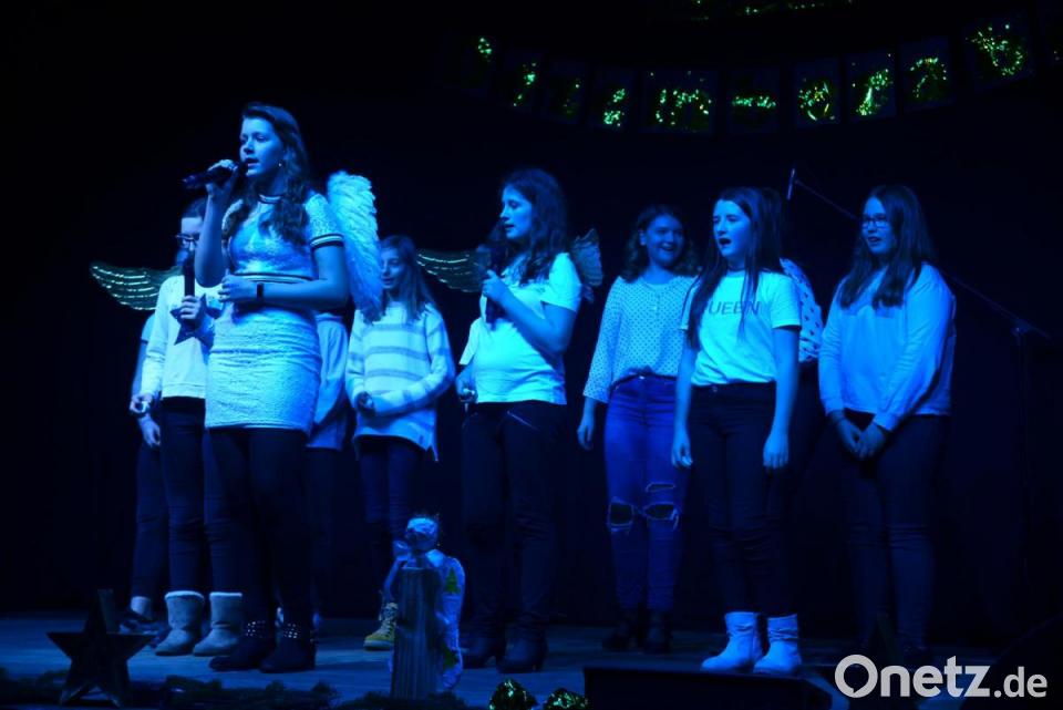 Dann wurde es rhythmisch auf der Bühne: Die Fünft- bis Neuntklässler zeigten ihren „Christmas-Dance“. Wunderbar, vielleicht etwas nachdenklich die musikalisch erzählte Geschichte der vierten Klasse von den „Sechs Weihnachtsbäumen“. Weil einer recht schief gewachsen war, wollte ihn niemand. Nur ein kleiner Mann, körperlich auch angeschlagen, nahm ihn mit nach Hause.