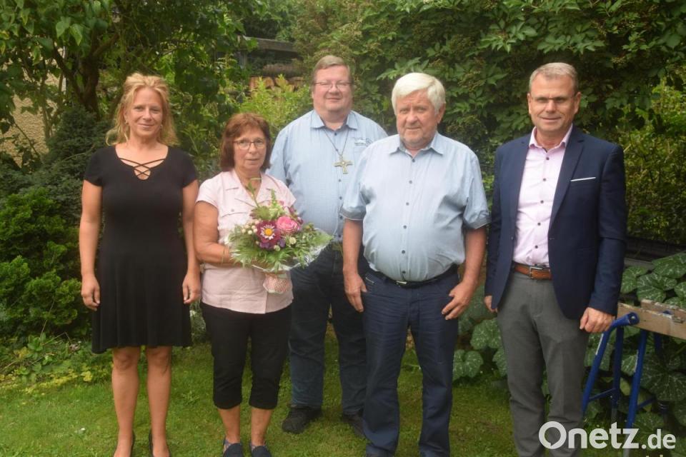 Goldene Hochzeit in der Hans-Böckler-Straße. Es sind Karin und Josef Albrecht, die mit Bürgermeister Karlheinz Budnik und Pfarrer Hubert Bartel als Gratulanten am Tisch sitzen und 50 Jahre Revue passieren lassen. Der 26. Juli 1973 war damals ein Samstag, aber das Wetter genauso schön wie am Jubiläumstag nach 50 Jahren, erinnert sich das Jubelpaar.
