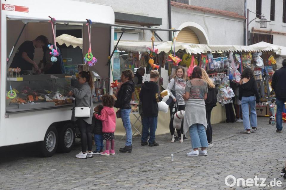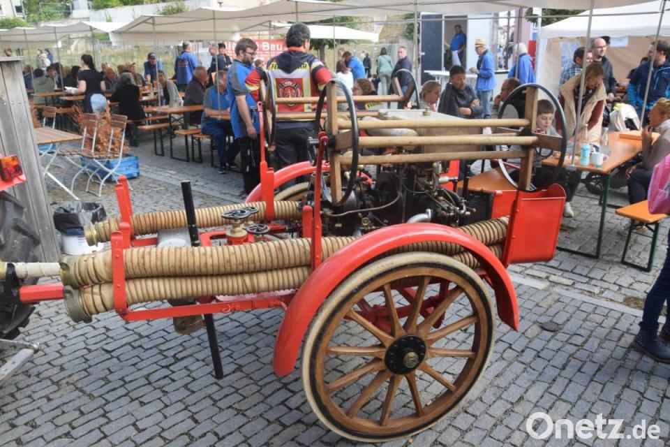 Und so ging es erst am Sonntag weiter: mit dem Kirwamarkt mit traditionellem Oldtimer-Treffen der Historischen Feuerwehr und Kirwatreiben auf dem Stadtplatz, musikalisch gestaltet von der Stadtkapelle. Hier gab's dann den zweiten Ausfall – die Bläser konnten aufgrund von Personalproblemen nicht musizieren.