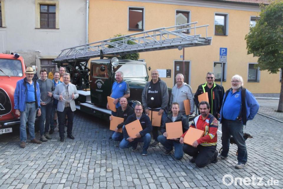 Freunde von der Berliner Feuerwehr, aus Hannover, vom Bayreuther Feuerwehrmuseum sowie aus weiter entfernten Orten bat Bürgermeister Karlheinz Budnik im Laufe des Nachmittags vor die Besucher, um ihnen zusammen mit Norbert Öser und Josef Bauer, den Vorsitzenden der Historischen Feuerwehr, ein Erinnerungspräsent in Bleikristall zu überreichen. Budnik sprach allen aus der Seele, als er sagte, dass man sich nach der Abstinenz wieder freue, Kirwa feiern zu können.