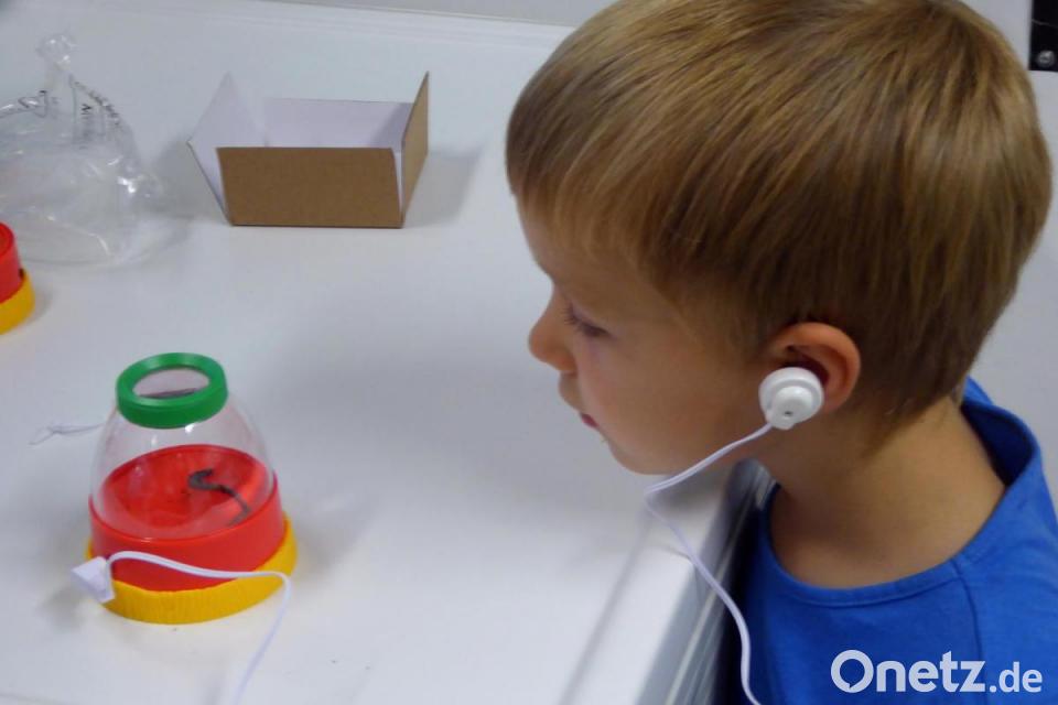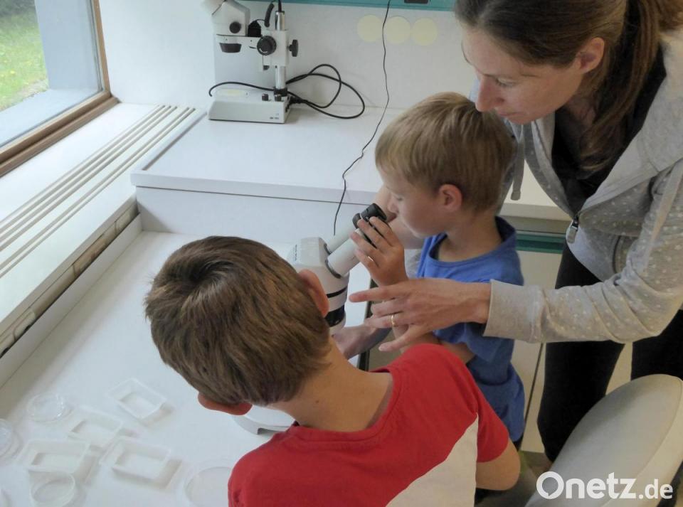 Schließlich brachten die drei Jungforscher ihre Beute ins Labor und legten sie in Petrischalen. Es standen drei leicht zu handhabende Mikroskope bereit. Ein Blick durch die Lupen lässt die Kinder staunen. „Schau mal, was du bei mir alles siehst“, forderte Tim die anderen auf, bei ihm durchs Mikroskop zu schauen. Licht anschalten, Schärfe und Vergrößerung einstellen und schon war man im Reich der winzigsten Dinge.