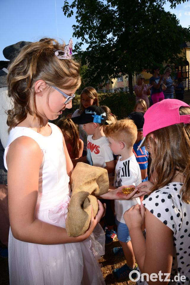 Viel Beifall gab es im Pfarrgarten am Ende der Märchenstunde. Die Kinder bekamen noch Golddukaten zur Erinnerung - natürlich aus Schokolade in goldener Folie.