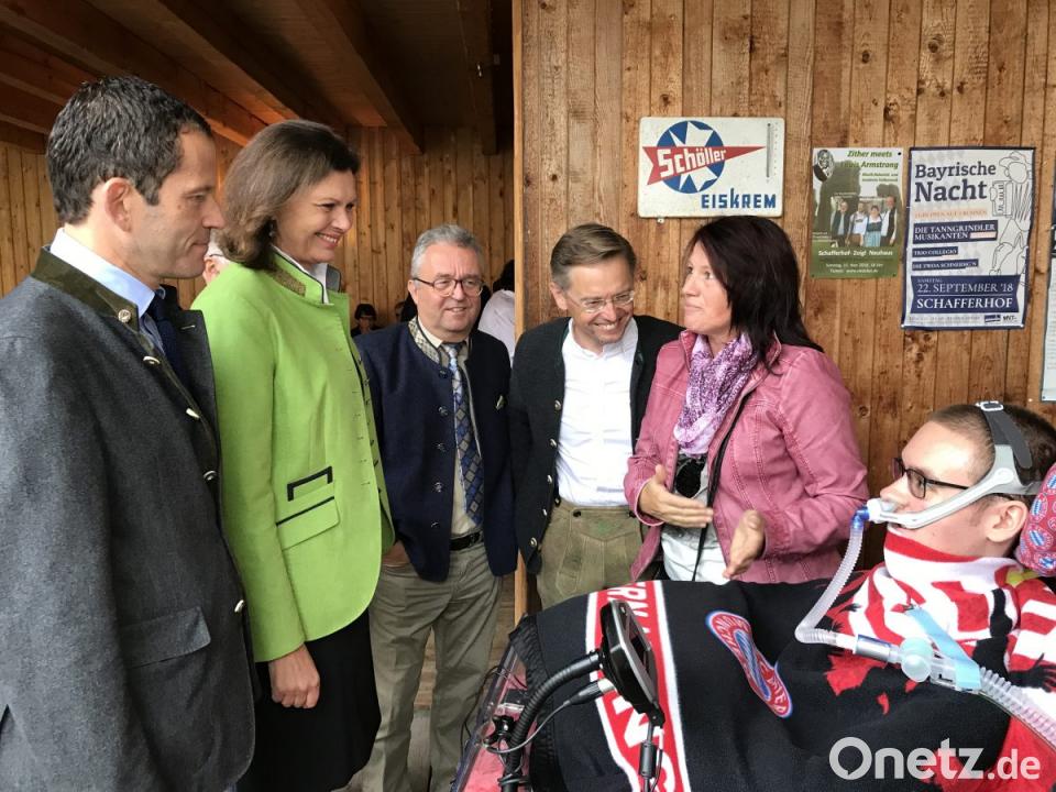 Neben den Musikanten, gleich am Eingang, hatte sich Familie Rahm aufgebaut, die Eltern Maria und Knut und ihr schwerbehinderter Sohn Alexander. Maria Rahm weiß sich keinen Rat mehr, wie sie sagt, und nahm Zuflucht zur Ministerin. Dieser schilderte sie kurz ihren derzeitigen Kampf mit ihrer Krankenkasse, die keine Wechseldruckmatratze für Alexander bezahlen will. Die braucht Alexander, wenn er am Wochenende zu Hause ist. Auf der Standardmatratze, die die Kasse zahlen würde, bekommt er sofort offene Druckstellen. "Das haben wir alles schon ausprobiert", beschrieb seine Mutter Ilse Aigner das Problem. Diese versprach, sich den Fall anzusehen.