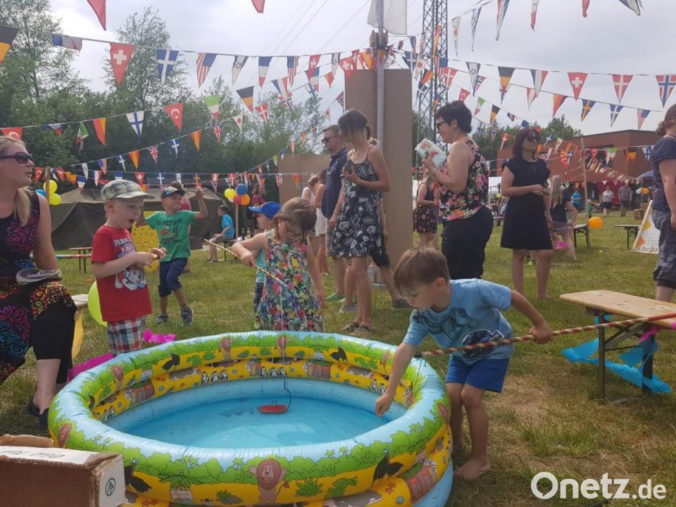 Zum Rahmenprogramm zählten eine Hüpfburg, ein Karussell, Hau den Lukas und viele selbstgebastelte Spielstände.