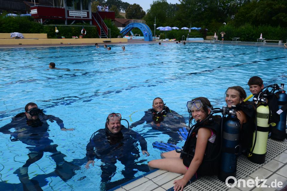 Nahezu schwerelos durch das Wasser gleiten und den Blick auf den Untergrund richten – das Kinderferienprogramm mit der Tauchschule „Easy Divers“ ermöglichte zwölf Buben und Mädchen dieses Erlebnis im Windischeschenbacher Freibad. Mit großer Sorgfalt bereiteten die erfahrenen Helfer die Kinder auf den Tauchgang vor. In Dreiergruppen ging es ins Schwimmerbecken. Jedes Kind wurde unter Wasser von einem Taucher begleitet und nicht aus den Augen gelassen. Die Begeisterung war jedenfalls groß und manch anderer Badegast zeigte im Laufe des Nachmittags ebenfalls Interesse am Tauchen.