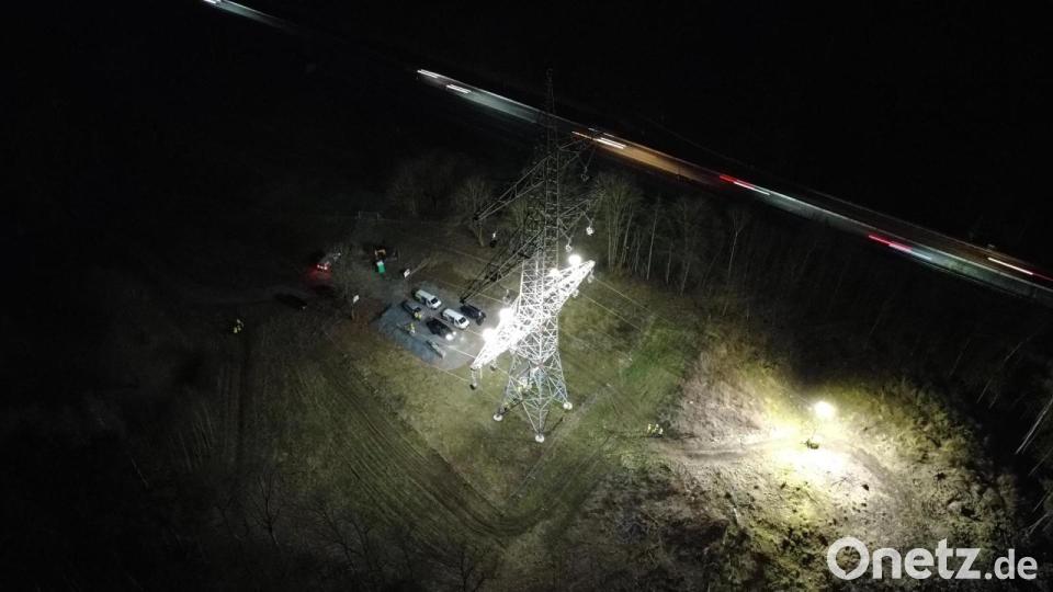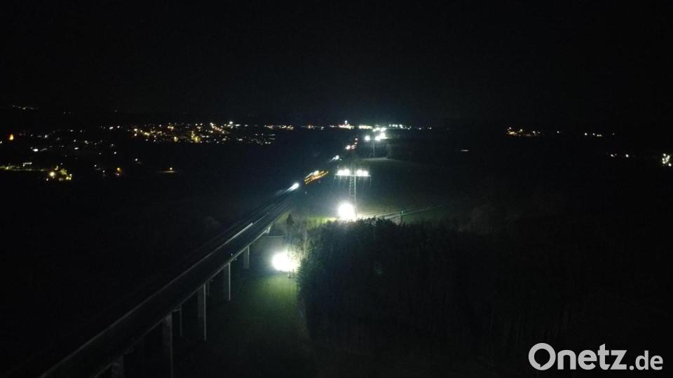 Der Seilzug auf der unteren Traverse kann nur in den zugfreien Zeitfenstern und deshalb ausschließlich nachts zwischen etwa 23 Uhr und 05.30 Uhr erfolgen. Während dieser Arbeiten werden die betroffenen Masten intensiv und redundant ausgeleuchtet, kündigt der Stromnetzbetreiber an. Unter anderem seien sogenannte Lichtgiraffen und Leuchtballone im Einsatz. Die helle Beleuchtung werde von der nahegelegenen Autobahn 93 deutlich sichtbar sein.