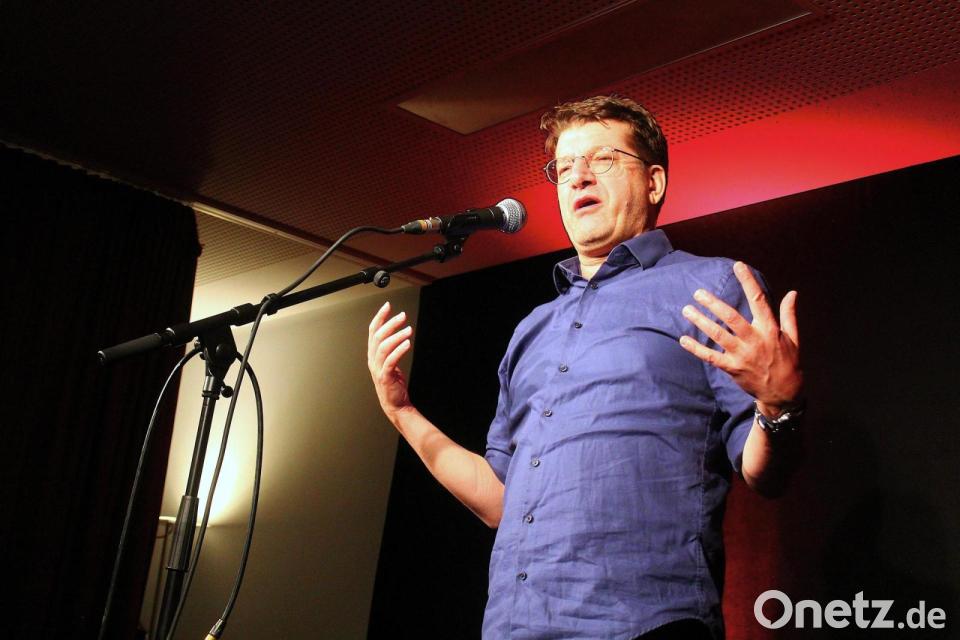 Für äußerst gute Stimmung bei den Besuchern sorgt auch eine längere Geschichte von Heinrich. Darin soll ein junger Mensch einem Patienten, der nach 25 Jahren aus dem Koma erwacht ist, die Veränderungen der Welt erklären – inklusive Smartphone, Streaming-Diensten, Corona, Doppel-Wumms und dem Verbleib von Bundeskanzler Gerhard Schröder.