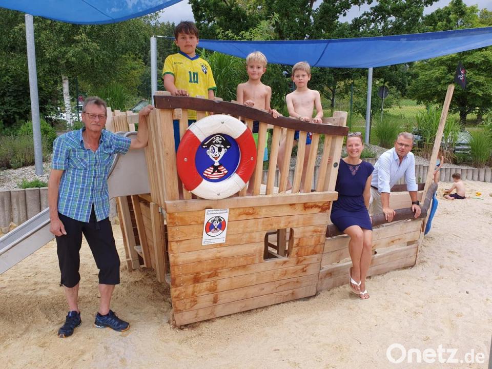 Finanziert wurde das Spielschiff im Freibad durch eine großzügige Spende von Beate Savidis an den Förderverein des Freibades. Stellvertretender Vorsitzender Joe Hartmann und Bürgermeister Karlheinz Budnik dankten für die finanzielle Unterstützung und freuten sich, dass die Kinder die "Black Pearl" gleich mit großer Begeisterung in Beschlag genommen haben.
