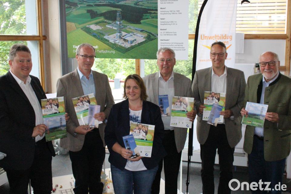 (mic) "Das passt perfekt, wenn wir schon eine Umweltstation sind", sagte er schmunzeln. Das Geo-Zentrum bezieht seit kurzem seinen Strom von der Bürgergenossenschaft Neue Energien West eG (NEW) aus Grafenwöhr. Geschäftsführer Bernhard Schmidt, Mitarbeiterin Alexandra Schopf, Vorstandsvorsitzender Helmuth Wächter und Klaus Grubervon der Naturstrom AG waren am Donnerstag an die KTB gekommen, um für den heimischen Ökostrom die Werbetrommel zu rühren. Auch Georg Stahl, Vorsitzender des Förder- und Trägervereins des Geo-Zentrums unterstützt das Vorhaben.