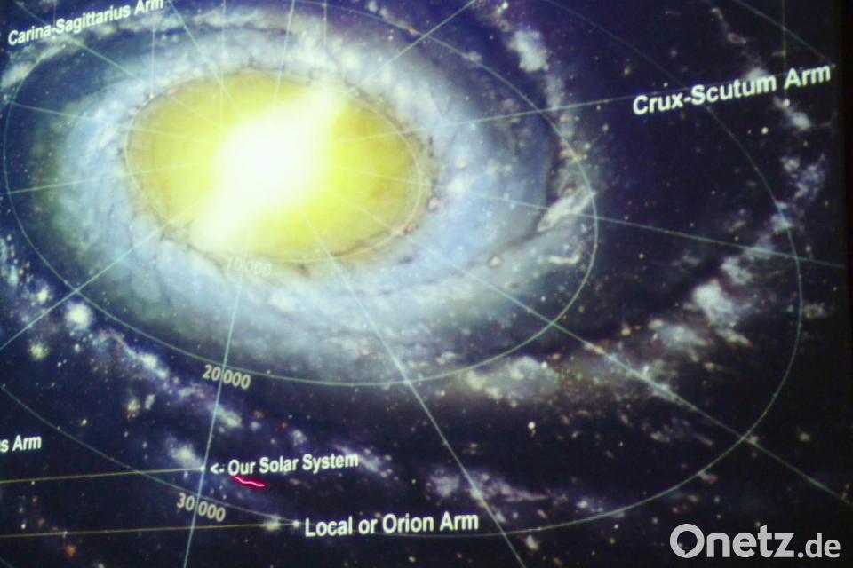 Die Entstehung von Planeten war bereits Inhalt des ersten Vortrags der Reihe „Der Blick ins All“. In unserem Sonnensystem zähle man die vier Gesteinsplaneten Merkur, Venus, Erde und Mars, von denen letzterer mit Atmosphäre und Wasservorkommen für die Menschheit bedeutsam werden könne. Danach folgten die vier Gasplaneten Jupiter, Saturn, Uranus und Neptun, der schon 4,5 Milliarden Kilometer entfernt sei. Eine Vorstellung der Entfernungen dieser Planeten voneinander vermittelt der Tirschenreuther Planetenweg. Noch weiter draußen liegen im Kuiper-Gürtel Hunderttausende sogenannter Trans-Neptun-Objekte. Von ihnen aus gesehen sei die Sonne nur einer unter vielen im Heer der Sterne der Milchstraße. In unserer Milchstraße rechne man mit 400 Milliarden Sternen.