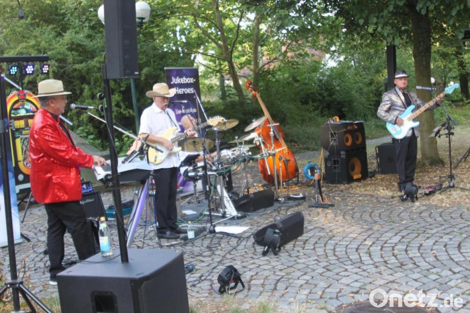 Die älteren Semester kennen die Lieder noch aus der Zeit, als sie neu waren. Die jüngeren deswegen, weil diese Art von Musik einfach Kult und unsterblich ist. Bei der dritten und letzten Serenade des Sommers im Park der Stützelvilla spielte "Jukebox-Heroes". Die vier nicht mehr ganz jugendlichen Musiker aus dem Landkreis Schwandorf, aus Nabburg und Schwarzenfeld, hatten all das im Repertoire, was romantische schöne und unvergessliche Erinnerungen ins Gedächtnis rief. „All my loving“ von den Beatles eröffnete den Oldie-Abend und Schlag auf Schlag ging es weiter mit den Hits von Creedence Clearwater Revival „Proud Mary“, „Who’ll Stopp the Rain“ oder „Bad Moon Rising“, „Pretty Woman“ von Roy Orbison und „Poor Boy“ von den Lords, einer in den Sechzigern angesagten Band.