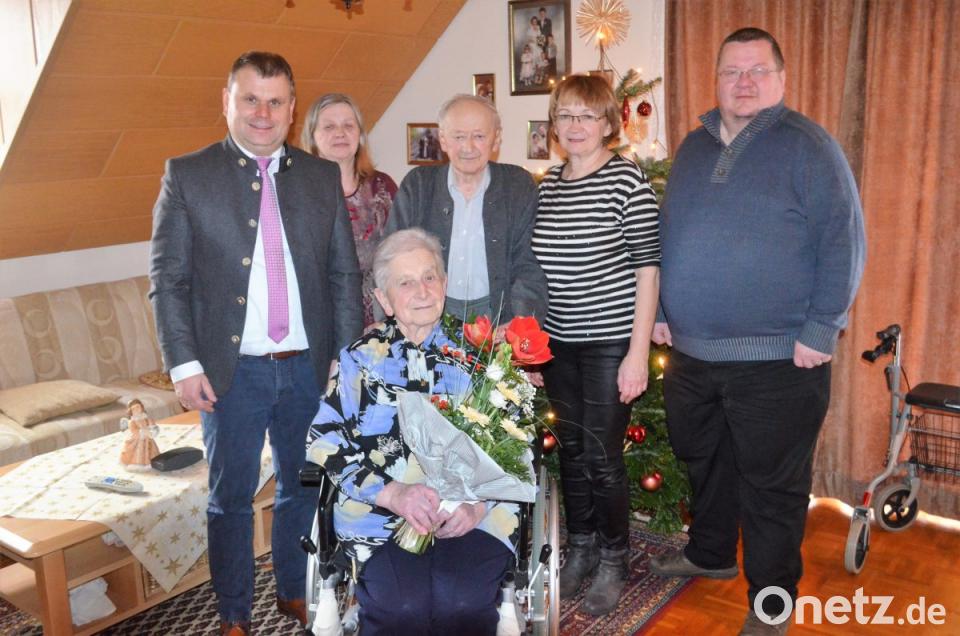 Der Stadtchef und der Stadtpfarrer sitzen mit der Jubilarin und deren Ehemann Matthias zusammen und sind beeindruckt, wie erfrischend beide aus ihrem Leben erzählen. Er ist aus Ödwalpersreuth und sie aus Falkenberg. Sie lernten sich kennen, und schon nach einem Vierteljahr wussten sie, dass es passt, und heirateten. Das war vor 62 Jahren.