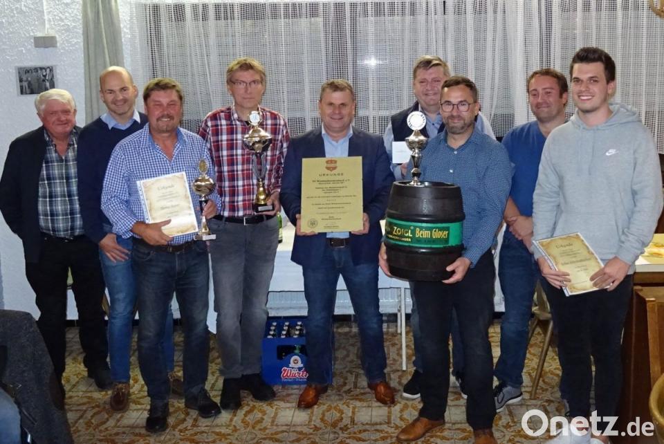 Die "Herren 40" hat in dieser Saison erneut die Meisterschaft gewonnen. Für den letztjährigen Aufstieg von der Kreis- in die Bezirksklasse gratulierte jetzt Bürgermeister Karlheinz Budnik. Er freue sich persönlich über den Erfolg, da er selbst ebenfalls knapp über 40 sei, scherzte er. "Ich sehe, dass meine Generation noch nicht zum alten Eisen gehört." Vorsitzender Hubert Käck versprach, das Geld in die Nachwuchsarbeit zu investieren. Für den erneuten Aufstieg des Teams in der laufenden Saison nun in die Bezirksklasse 1 spendierte Spieler Clemens Sammet einen Pokal.