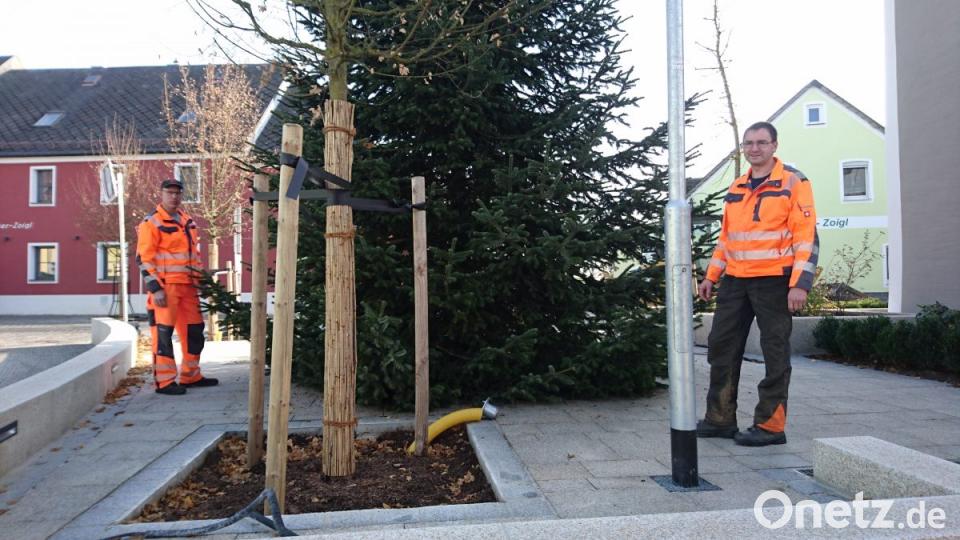 Mitarbeiter des Bauhofs kümmerten sich am Mittwoch bereits um die Christbäume im Stadtgebiet. Am Vormittag stellte das Team um stellvertretenden Bauhofleiter Matthias Neumann den Neuhauser Baum - eine Nordmanntanne aus Dietersdorf - beim Marktpodest auf. Dann ging es weiter zum "Stachus", zur Schule und auf den Stadtplatz. Für diese Standorte haben German Enders, Hans Käck und die Familie Köllner Blautannen gespendetet. Ein weitere kleinerer Baum soll vor dem Rathaus seinen Platz finden.