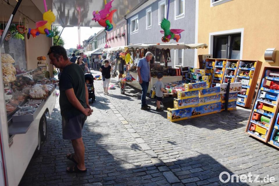 "Letztes Jahr waren grad zwei Standln da und heuer ist es eine richtige Kirwastraße", freute sich ein Windischeschenbacher angesichts der Präsenz von mehreren Markthändlern am Sonntag in der Hauptstraße. Es gab Bekleidung, Spielsachen und Süßes. Die Kirwa war geprägt vom Auftritt der Historischen Feuerwehr mit ihren betagten Einsatzfahrzeugen, die den Stadtplatz in Beschlag genommen hatte. Der Verein hatte da noch Tische und Bänke aufgebaut und es gab ab früh um zehn Uhr kühle Getränke und auch Essen. Zudem unterhielt das Haisl-Trio musikalisch. Davon profitierten natürlich die Markthändler durch die heuer verbesserte Nähe zum Stadtplatz.