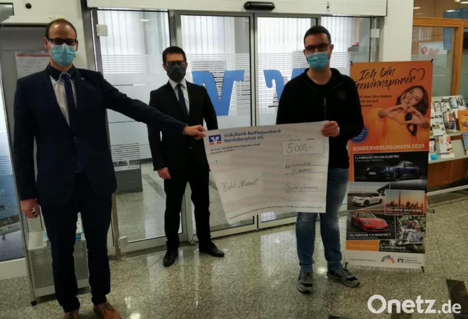 In der Oktober-Auslosung des Gewinnsparvereins der Volksbank Raiffeisenbank Nordoberpfalz eG hatte Michael Höcht das große Los gezogen. Der Windischeschenbacher gewinnt 5000 Euro und freut sich bei der Gewinnübergabe durch Viktor Hofmann, Privatkundenbetreuer, sowie Christian Pöll, Regionalmarktleiter, riesig über sein Glück.