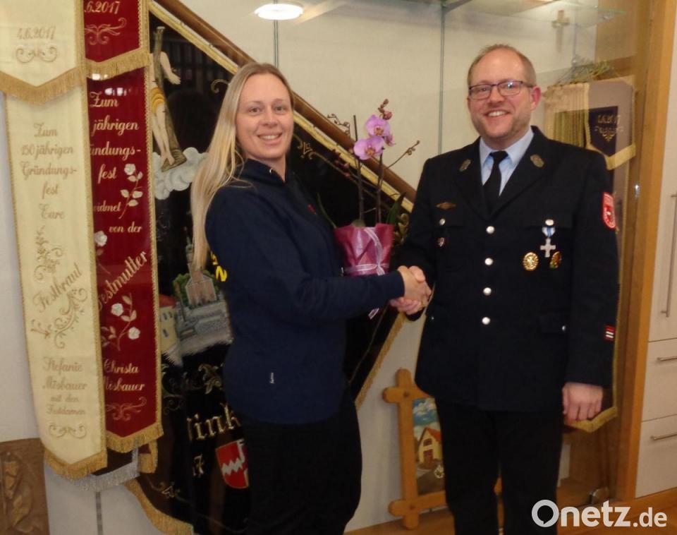 Seit 2015 sorgte Sonja Lingl für Sauberkeit im Feuerwehrhaus. Dafür dankte ihr Stefan Pregler mit einem Blumenstock. Ihre Nachfolgerin ist Katrin Nesner.