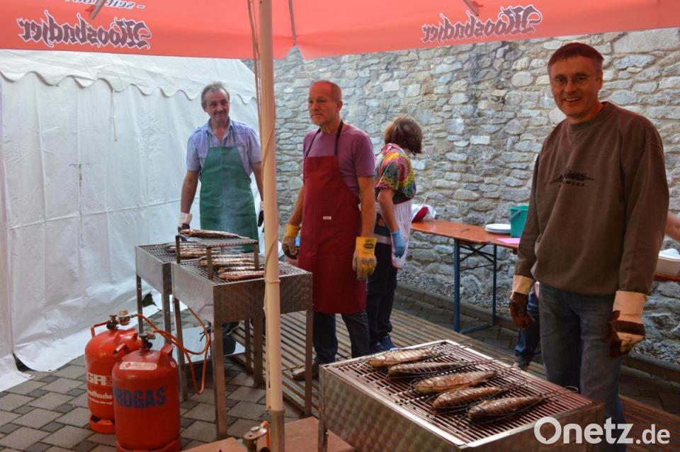 Viele Fischliebhaber von auswärts, Urlaubsgäste und natürlich auch die einheimischen Freunde des OGV freuen sich stets auf das Fischessen, das der OGV Winklarn schon viele Jahre ausrichtet. Zum Ende des Sommers schmecken die gegrillten und geräucherten Forellen besonders gut. Nach dem Gottesdienst bestand bereits die Möglichkeit zum Frühschoppen, dann ging es nahtlos über zum Mittagsangebot. Ob Fisch gegrillt, geräuchert, oder auf dem Baguette – die Besucher waren begeistert. Und für Nicht-Fischesser hatte der Verein Käse und Wiener auf der Speisekarte. „Chefs am Grill“ gab es mehrere aus den Reihen des Gartenbauvereins. Sie bereiteten die in Salzlake eingelegten Forellen über dem Rost zu.