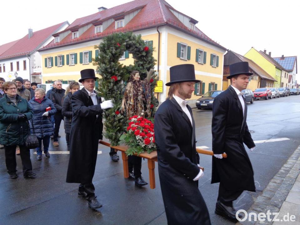 Nach alter Tradition wurde das Sebastiansfest gefeiert. Die mit Münzen und Rosenkränzen behangene Statue des Heiligen wurde auf einem Gestell – geschmückt mit Blumen und Tannengrün – von vier jungen Männer in Frack, Zylinder und mit weißen Handschuhen von der Mariensäule zur Kirche getragen. Blasmusikklänge hatten den Zug geleitet, und zu den Klängen der Orgel wurde ins Gotteshaus eingezogen.