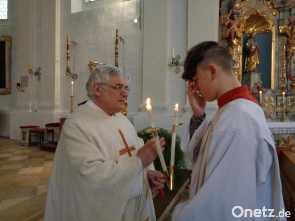 40 Tage nach Weihnachten feiert die katholische Kirche das Fest „Darstellung des Herrn“ oder Maria Lichtmess. Nach dem Gottesdienst spendete Pfarrer Eugen Wismeth nach alter Tradition den Blasiussegen. Dieser geht zurück auf den heiligen Blasius, einer der 14 Nothelfer, dessen Namenstag am 3. Februar gefeiert wird. Er lebte als Arzt und später als Bischof in Sebaste in Kleinasien. 316 wurde er wegen seines Glaubens hingerichtet. Nach der Legende soll er im Gefängnis durch sein Gebet einen Mann, der eine Fischgräte verschluckt hatte, geheilt haben. Mit zwei gekreuzten Kerzen segnete der Geistliche die Gläubigen einzeln mit den Worten: "Auf die Fürsprache des heiligen Blasius bewahre dich der Herr vor allen Halskrankheiten und allem Bösen."