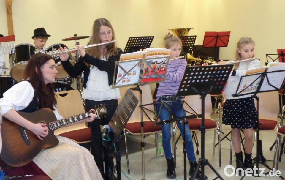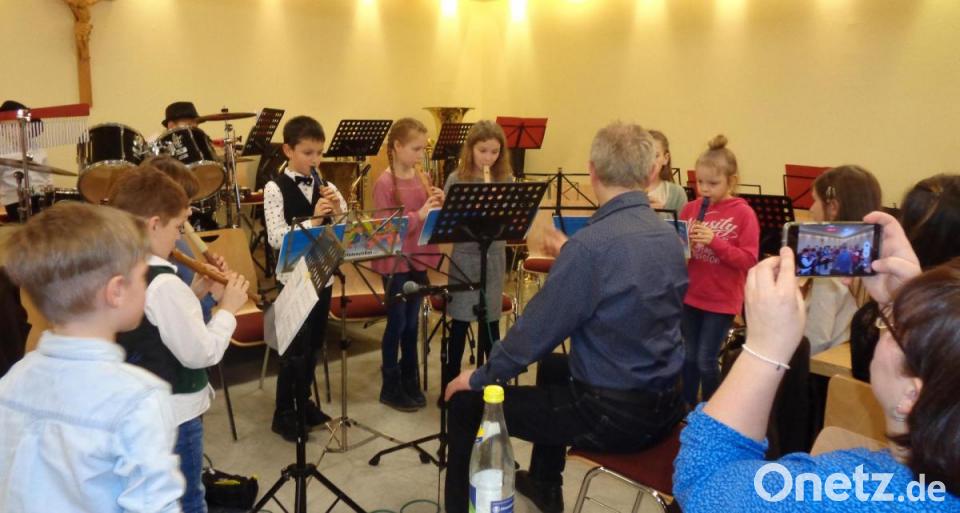 Mehrere kleine Stücke und Kinderlieder hatte Tobias Zeitler mit den Blechblasinstrumenten eingeübt. Es spielten Leni Janner mit Josef Wutz, Toni Janner mit Tobias Zeitler und Janik Bücherl mit Anna Pregler. Mit Saxophon und Klarinette erklang „Räuber Hopse“ von Nina Dirscherl, Anna Höcherl und Antonia Markl und die „Froschgymnastik“ von Laura Borowski, Daniel Kiener, Theresa Wutz und Noah Zapf. Nur mit Klarinetten folgte die „Sternpolka“ von Marie Bücherl, Emma Fuchs, Sophie Janner und Judith Zintl. Mit Querflötenstücken von Lena Borowski, Christine Drexler und Nicola Eckl endeten die Vorträge der Schüler.