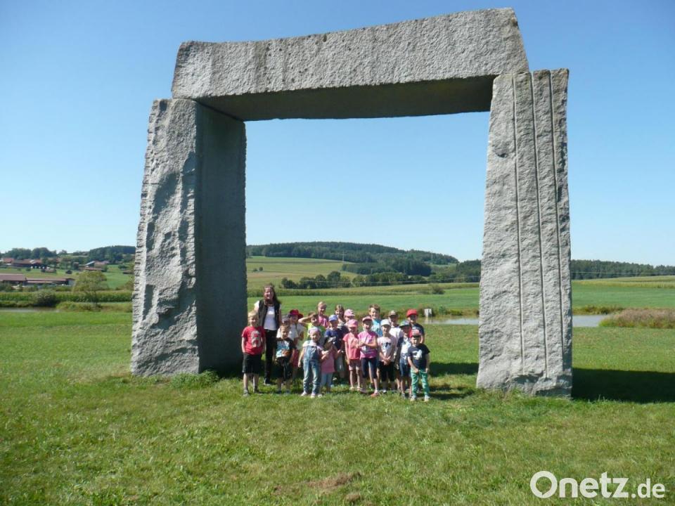 Am Steinmonument „Stonehenge“ erläuterte Doris Herrmann (Granitwerk Herrmann) den 20 Kindern die Entstehung dieses besonderen Gebildes. Dafür waren 1994 drei jeweils über 40 Tonnen schwere Granitblöcke mit Muskelkraft aufgestellt worden. Auslöser dafür war ein Dokumentarfilm des Bayerischen Fernsehens über die Megalithkultur. Das sechs Meter hohe Kunstwerk zählt heute zu den besonderen Attraktionen der Oberpfalz. Bei einer Betriebsbesichtigung gab es interessante Einblicke in die Arbeit im Granitwerk. Die Kinder durften noch Pflastersteine mit Serviettentechnik gestalten und bemalen.