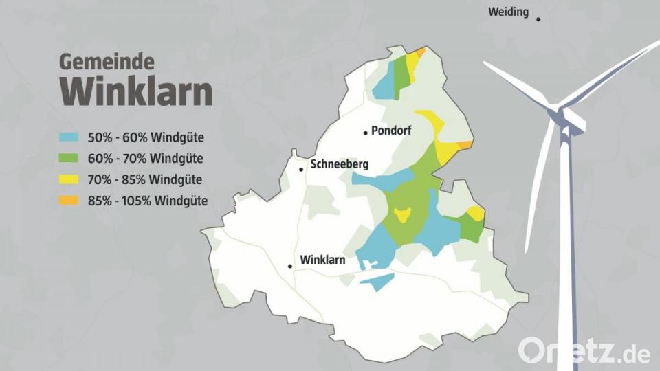 "Bislang hatte der Markt Winklarn keine Flächen für Windenergie gemeldet", berichtet Benjamin Zwack, Sachbearbeiter Baurecht bei der Verwaltungsgemeinschaft Oberviechtach, auf Nachfrage von Oberpfalz-Medien. Trotzdem könnten auf Gemeindegebiet Windräder gebaut werden. Eine Potenzialflächenkarte des Regionalen Planungsverbands für Windgüte liefert den Interessenten die Anhaltspunkte, eine neue Gesetzeslage lässt das zu – falls mit dem Regionalplan die Weichen dafür nicht entsprechend gestellt sind.