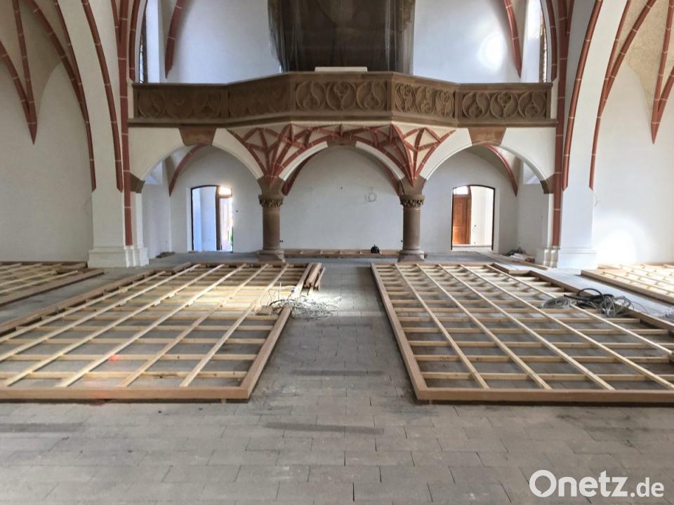 Denn es folgte unmittelbar die Innensanierung. Dem Erntedankfest 2017 schloss sich die vollkommene Entkernung der Kirche an. "Nur die Mauern im wahrsten Sinne des Wortes standen noch", erinnert sich Grafe. Bis zum Felsengrund, 70 Zentimeter tief, musste der Innenraum ausgebaggert und mit Frostschutz versehen werden. Darauf legten die Arbeiter Luftbetonsteine, und auf diese Sollnhofener Kalksteinplatten mit versteinerten Pflanzen wie Farne und Gräser, die heute noch erkennbar sind. Sie sind eines der vielen Unikate, denn sie sind Bestandteil der Kirche seit ihrer Errichtung 1905. Teils beschädigt, war es allein aus Denkmalschutzgründen eine Verpflichtung, sie zu erneuern.