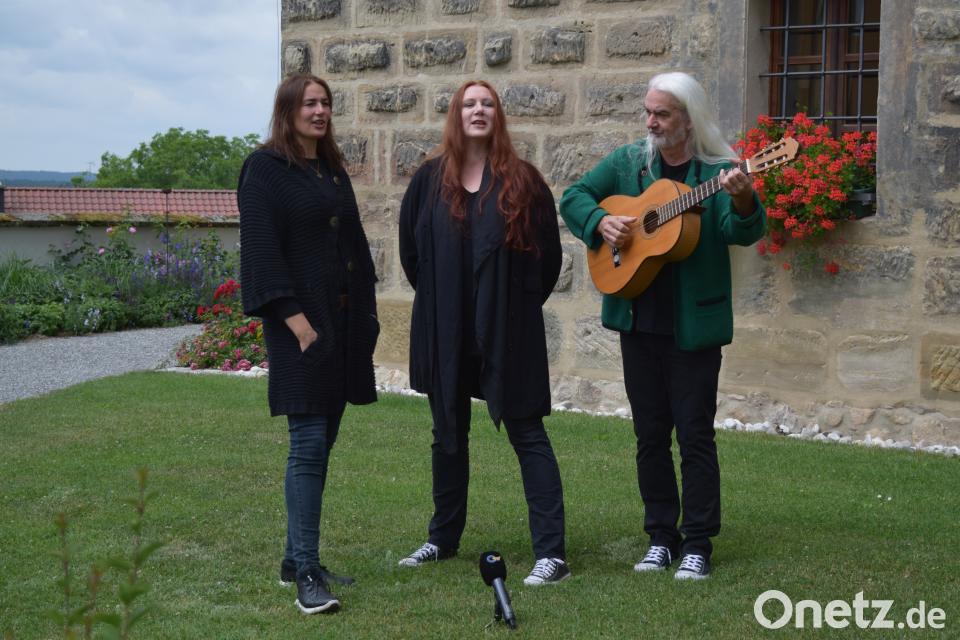 Tanja und Susi Raith samt dem Blaimer waren begeistert von dem Ambiente, das ihnen Bürgermeister Christian Ziegler und der Wolfringer Schlossherr Carl Graf zu Eltz vorstellten. Ein bauliches Kleinod, vor nicht allzu langer Zeit mit einem neuen Dach versehen und das Dorf allein schon von seiner wuchtigen Höhe her dominierend. "Ein toller Ort", freuten sie sich auf ihren Auftritt, der am Freitag, 20. Juli, um