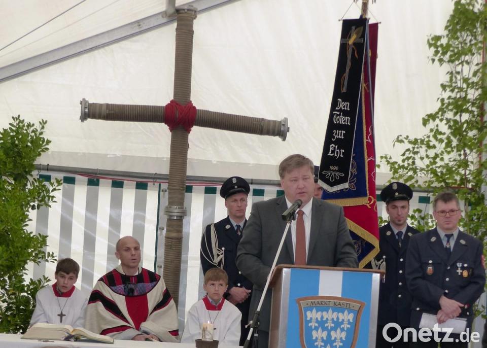 Vorsitzender Franz Lautenschlager freute sich vor dem Gottesdienst im Festzelt über viele Gäste und die Kameraden aus Kastl, Pfaffenhofen, Utzenhofen, Emhof und Ursensollen mit ihren Fahnenabordnungen. Ganz besonders freute sich der Vorsitzende, dass Jesuitenpater Markus Luber aus Dettnach seinen Wunsch erfüllt hat und den Einweihungsgottesdienst zelebrierte und das neue Fahrzeug segnete.
