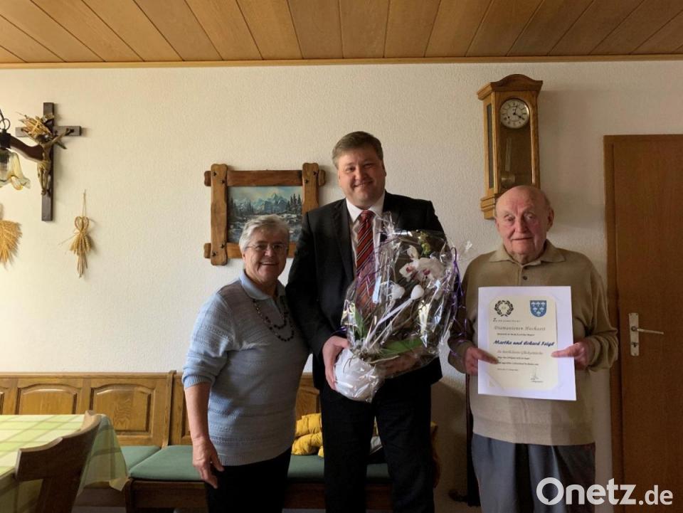 Bürgermeister Stefan Braun überbrachte im Namen des Marktes Kastl die besten Glückwünsche an die Eheleute. Er wünschte ihnen noch viele glückliche Jahre im Kreise der Familie, zu der fünf Kinder, vier Enkel und drei Urenkel zählen.