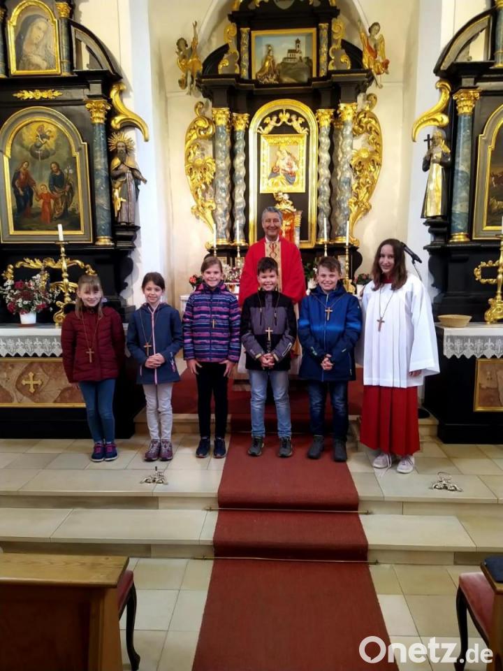 Beim „Kirchweih“-Gottesdienst in der St. Emmeram-Kirche in Woppenrieth wurden fünf Ministranten offiziell von Pfarrer Adam Nieciecki in die Schar der Messdiener aufgenommen. Die neuen Altardienern Evelina Heuberger, Anna Kraus, Lukas Kraus, Johanna Schärtl und Florian Uschold erhielten zum Einstand die Kreuze, die sie beim Altardienst tragen werden. Anna-Lena Zitzmann und Lara-Marie Heuberger hatten die neuen Ministranten auf den Dienst in der Kirche vorbereitet.