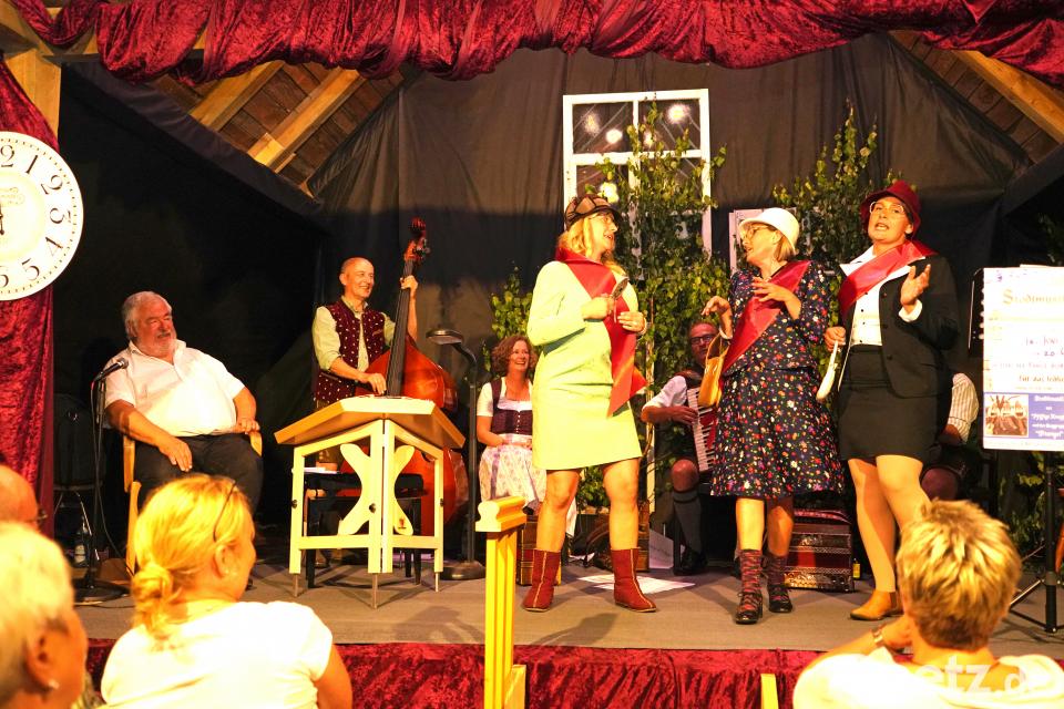 Die ganze Breite ihres gesanglichen Könnens zeigten die drei "Triangel"-Damen, die an diesem Abend ihr fünfjähriges Bühnenjubiläum feierten und von ihrem "Entdecker" Hans-Peter Reil dafür eine Bildercollage erhielten. Lebensfrohe Töne schlugen sie beim "Postfrosch" an, wobei sich die Besucher im überfüllten Stodl prächtig amüsierten. Und als die drei Sängerinnen als spezielle Schönheitsköniginnen auftraten, zeigten sie auch ihr grenzenloses schauspielerisches Talent, das das Publikum zu Beifallsstürmen hinriss.