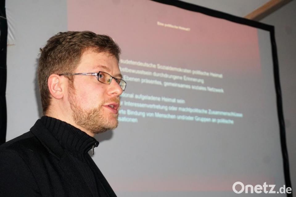 Projektkoordinator Dr. Bastian Vergnon von der Ostbayerischen Technischen Hochschule Regensburg (OTH) trug einige Aspekte aus seiner Doktorarbeit vor. Unter dem Titel „Unsere politische Heimat konnte man uns nicht nehmen. Die bayerische SPD und die sudetendeutschen Sozialdemokraten“ forschte er über die Zeit zwischen 1945 und den 1970er Jahren. Wichtig für die Sudetendeutschen war demnach, dass sie sich nach der Vertreibung in Bayern schnell wieder organisieren konnten. Im kommunalen Bereich und auf Landesebene hatten sie ihre politischen Schwerpunkte. Zunächst konnten sich die sudetendeutschen Sozialdemokraten gut in die bayerische SPD integrieren, später wurde die gemeinsame Geschichte wechselhafter. Insbesondere in der Zeit der neuen deutschen Ostpolitik standen die Sudetendeutschen eher isoliert neben den bayerischen Sozialdemokraten.