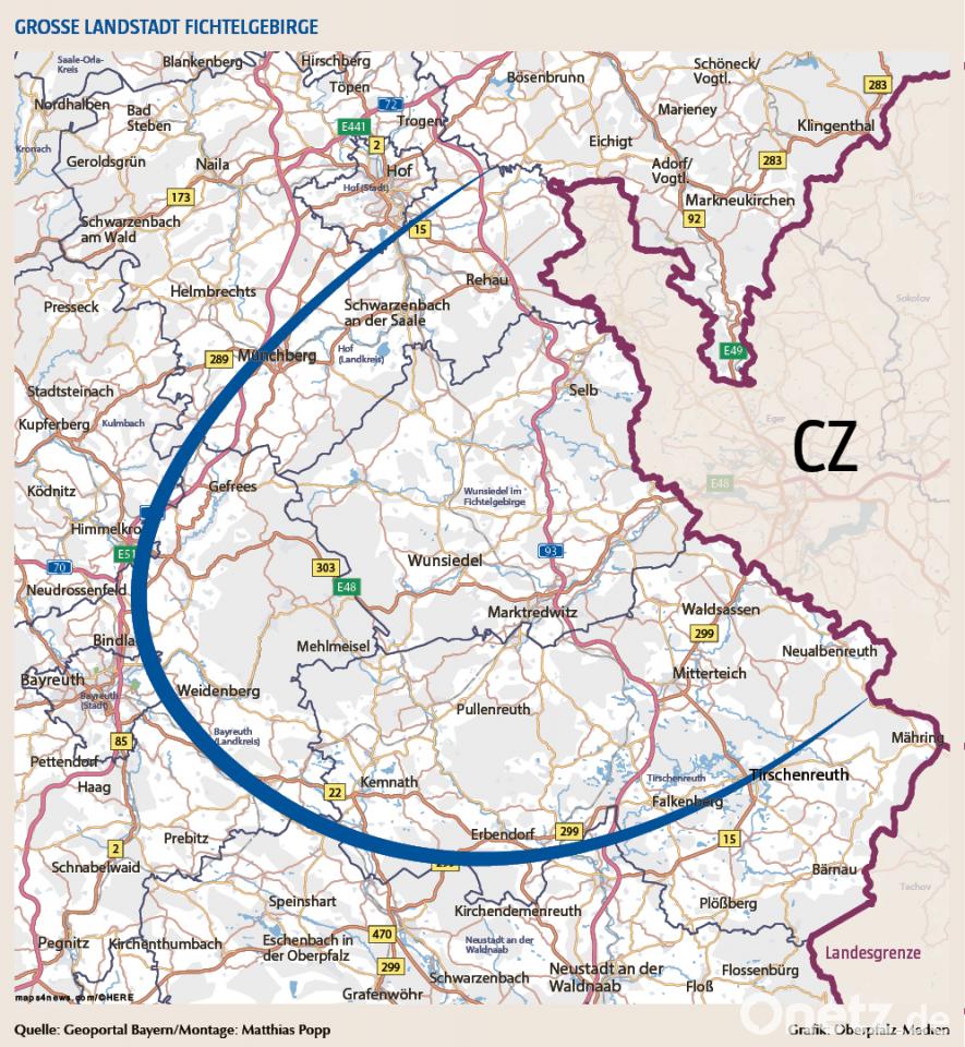 München, Nürnberg und Augsburg sind Bayerns größte Städte. An vierter Stelle kommt Regensburg - das aber könnte sich in nicht allzu ferner Zukunft ändern, wenn es nach dem Willen eines Wunsiedler Stadtrats geht. Matthias Popp hat eine Vision: Er will, dass aus 42 Kommunen im Fichtelgebirge eine Stadt wird. Große Landstadt Fichtelgebirge soll das Gebilde heißen. Mit etwa 160.000 Einwohnern wäre es die viertgrößte Stadt im Freistaat. Ist Popps Idee ambitioniert, unrealistisch - oder gar gefährlich? Darüber wird derzeit in Oberfranken und darüber hinaus rege diskutiert.