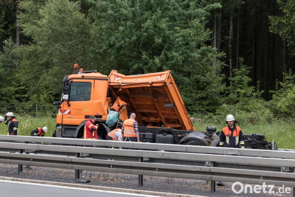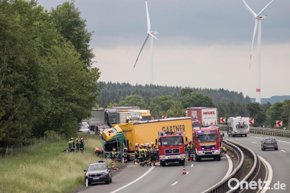 Rettungsdienste waren im Großeinsatz: Bei dem Aufprall des Sattelzuges auf den Warnanhänger kurz nach der Anschlussstelle Thiersheim wurde der Fahrer eingeklemmt. Nach Angaben der Verkehrspolizei Hof kam der Mann mit leichteren Verletzungen davon, wurde aber ins Klinikum Weiden gebracht. Den Schaden beziffert die Polizei auf rund 350.000 Euro: Neben dem Anhänger ist bei der Kollision die Sattelzugmaschine total demoliert worden. Der Verkehr wurde über die andere Spur ausgeleitet.