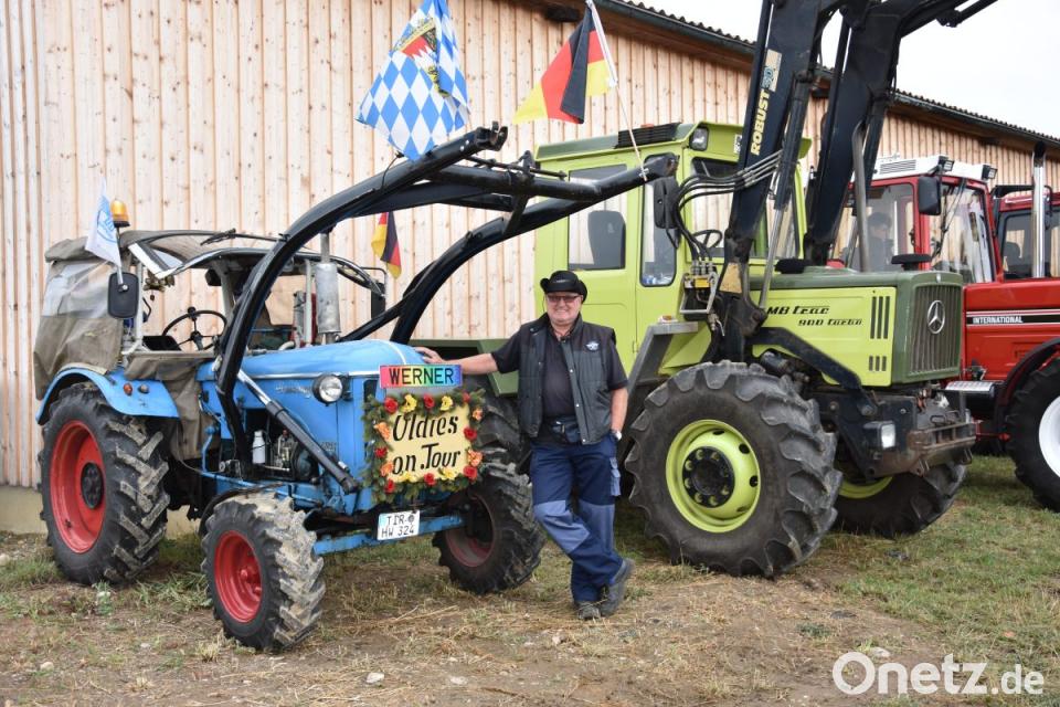 Doch trotz des nasskalten Wetters und drohenden Regens kommen 54 Besitzer mit ihren Oltimern zur Fahrt nach Wurz. Auch Werner Teubner ist mit seinem Traktor aus Mitterteich angereist. Getreu dem Motto "Oldies on Tour" wollte er heute dabei sein. "Ich bin ein Oldie und mein Traktor ja auch", erklärt Teubner den Spruch, der auf dem Schild an der Front seines Fahrzeugs zu lesen ist. Neben vielen Einheimischen sind Oldtimerfreunde bis aus Waldsassen oder Pechbrunn gekommen.