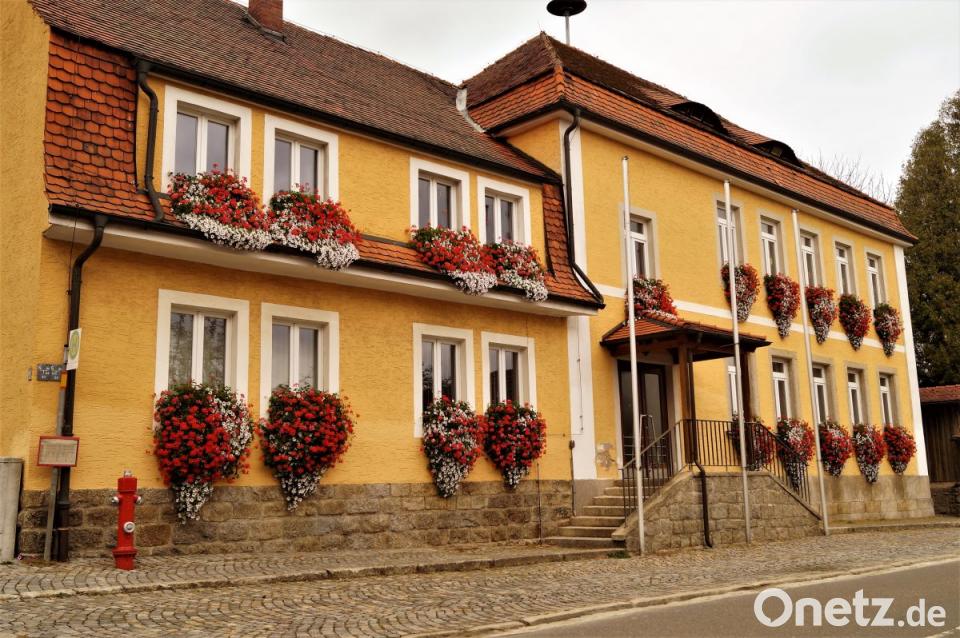 Die roten Geranien und die weißen Petunien sind ineinander sehr schön vermischt. An den 19 Fenstern des Gemeindehauses hängen weit über einem Meter nach unten. Wirklich eine Pracht, sind sich vorbeifahrende Bürger einig. Das die Blumen Ende Oktober noch so schön sind, kommt selten vor. Damit sie so eine Augenweide sind, zeichnet der Ortsverschönerungsverein verantwortlich. Gepflegt werden sie vom Ehepaar Maria und Josef Gleißner. Zu dem bunten Bild der Blumen passt auch die Farbe des Gemeindehauses.