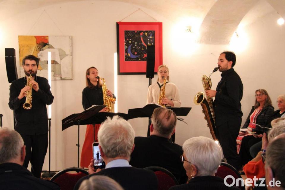 Das Quartett besetzt mit Claus Hierluksch (Sopransaxophon), Ricarda Fuss (Altsaxophon), Anna-Marie Schäfer (Tenorsaxophon) und Jure Knez (Baritonsaxophon) musizierte mit brennender Leidenschaft, purer Spielfreude und klanglicher Vielfalt auf höchstem Niveau, wie man es nur selten erlebt. Klanglich aufs Feinste abgestimmt entlockten sie ihren Instrumenten das gesamte Klangspektrum.