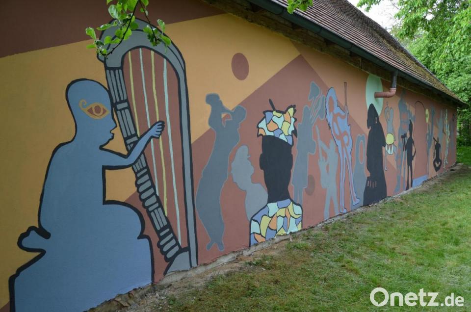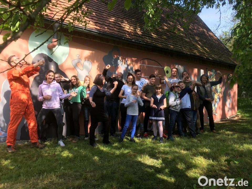Musik in Bildern komponiert: Insgesamt waren 20 Kinder- und Jugendliche aus der Grundkunstschule Jindřicha Jindřicha in Domažlice, aus dem Kunstbetrieb Cham, der Kulturwerkstatt Kalmreuth und dem Kepler-Gymnasium Weiden im historischen Pfarrhof an der großformatigen Wandmalerei beteiligt. Sie wird diesen Samstag, 15. Juni, zur 950-Jahr-Feier eröffnet.
