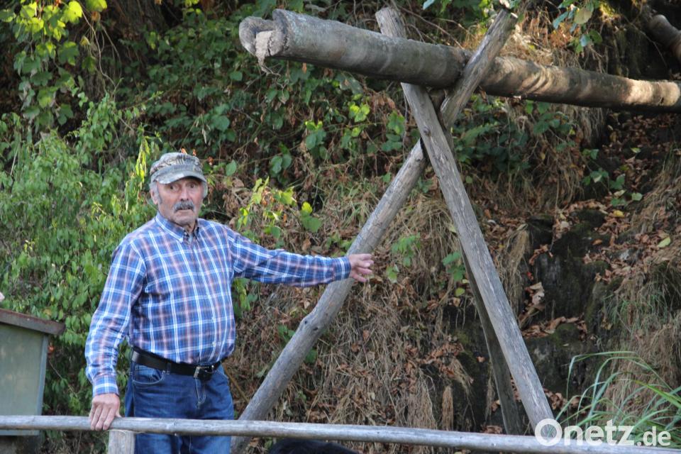 "So etwas habe ich noch nie erlebt", sagt der 77-Jährige, der von Kindesbeinen am Lohbach in Wutschdorf wohnt. Es komme schon mal vor, dass Wasser im Bach versiegt, aber diese Trockenperiode sei außergewöhnlich. Seit nunmehr acht Wochen ist der Wasserfall trocken. Schlecht für seine rund 200 Forellen, die sich im Teich daneben tummeln. Um das Fischwasser mit Sauerstoff zu versorgen, muss Schmidbauer Wasser aus einer anderen Quelle herpumpen.