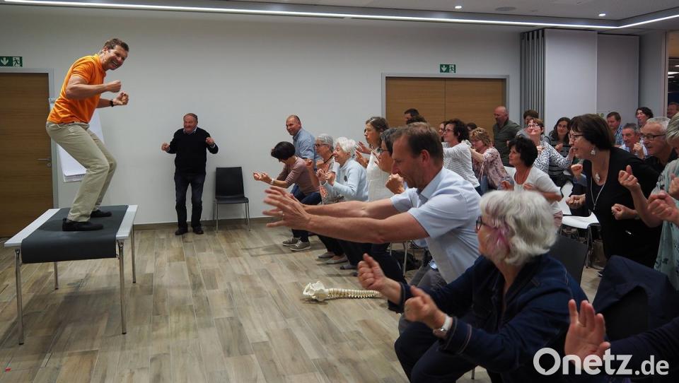 Der Referent zeigte nicht nur Übungen zur Schmerzfreiheit, sondern war gleichzeitig Motivator und Unterhaltungskünstler. "Zu mir müssen die Leute nur einmal kommen", stellte er fest und äußerte damit seine Bedenken gegen Schulmedizin und die Praxis in der Physiotherapie: "Die ineinander verstrickten Netzwerke wollen das nicht, was ich mache." Deshalb empfahl er, die Verantwortung nicht an den Therapeuten abzugeben. Man müsse den Mut haben, seine körperlichen Beschwerden alleine zu lösen.